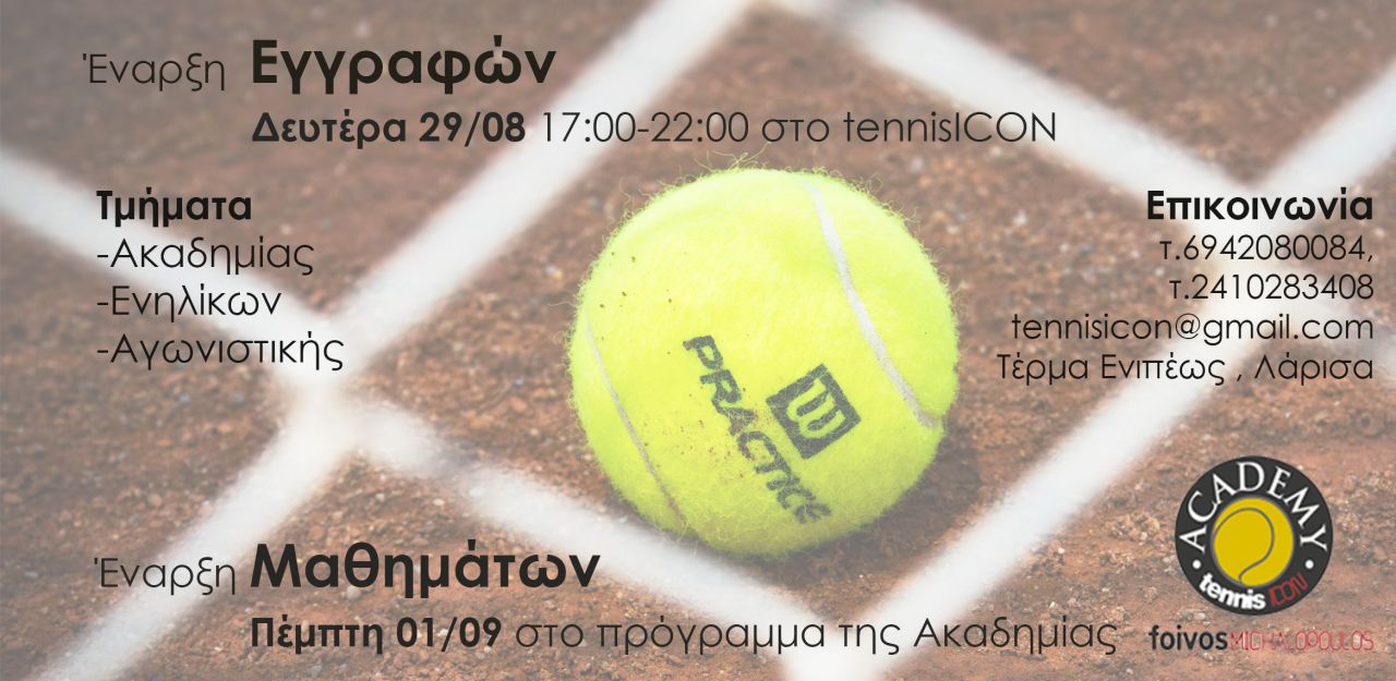 Σας περιμένουμε λοιπόν στο tennis ICON , Τέρμα Ενιπέως και για οποιαδήποτε πληροφορία επικοινωνήστε στα τηλέφωνα μας ( 6942080084, 2410283408).