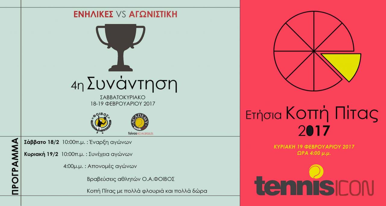 Οι αγώνες θα ξεκινήσουν το Σάββατο 18-2-2017 στις 10:00π.μ. και θα ολοκληρωθούν την Κυριακή 19-2-2017 στις 4:00μ.μ.