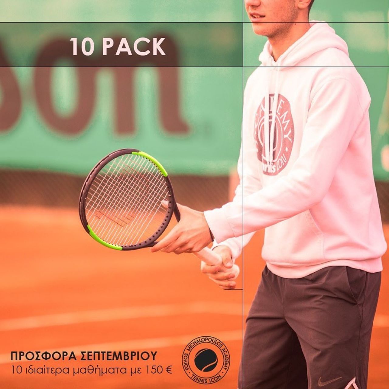 Για να μπούμε γρήγορα σε αγωνιστικούς ρυθμούς προσφέρουμε ένα πακέτο 10 ιδιαίτερων μαθημάτων με όλους τους προπονητές της Ακαδημίας (εκτός του Φ.Μιχαλόπουλου) στην τιμή των 150€.
